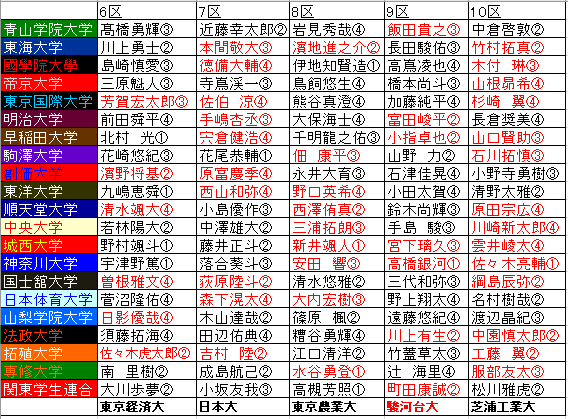 今回大魚を逃した創価大も往路優勝のメンバーが4名残りますから引き続き上位崩しのチャンスはあるでしょう。順大・國學院大も同じく上位当たりのグループ。